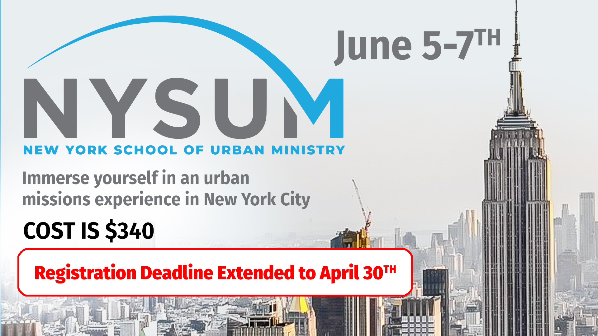 New York School of Urban Ministry (NYSUM) June 5-7 Step into a transformative urban missions experience in the heart of New York City. NYSUM is a three-day immersive opportunity designed…